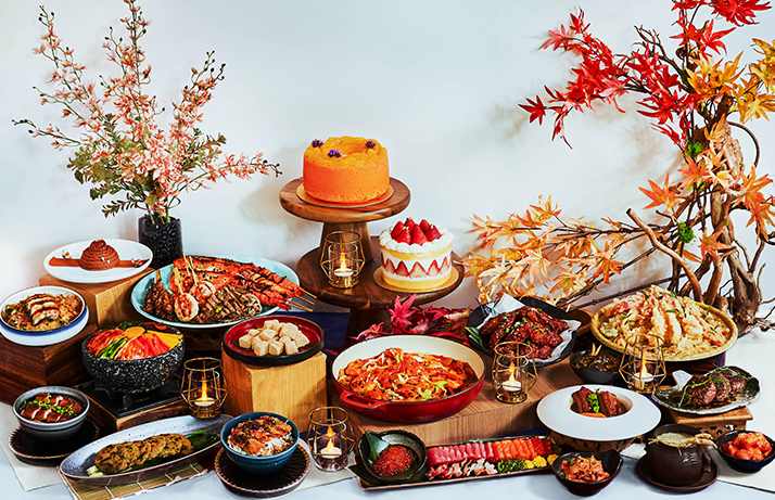 Embark on a cross-cultural culinary adventure spanning Seoul to Tokyo. Begin with Korean delights such as assorted gimbaps, Korean fried chicken, and Busan-style corn dogs, then savour Japanese highlights including chirashi don, wagyu beef udon soup, kombu butter prawns, and baked oysters. Complete your meal with Korean ginseng chicken soup and desserts like watermelon soju jelly, hallabong orange chiffon cake, and milk pudding.