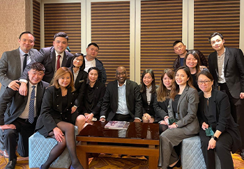 Vella (centre) with his former colleagues from Galaxy Hotel Macau.